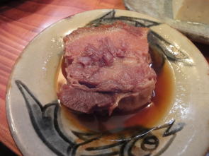定番?のソーキそばを食べる。 ソーキとはそばの上に乗っかっている、豚肉の骨付き肉のこと。 このソーキが乗っかっていないと、ただの沖縄そば。 沖縄の人は「そば」と発音せずに「すば」と言います。 |