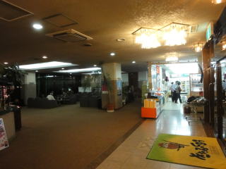 明るい館内、広いロビー。 お土産屋さんや木彫り屋さんも出展している。 露天風呂は森に向かっているので、名湯の森・・がよく似合う。 |