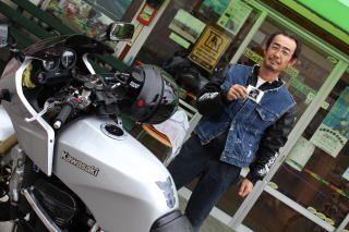 | 西端さんダンナ。 愛車のバラデロより背中を写してね〜♪ はい!・・・・玉置浩二に似てない? |