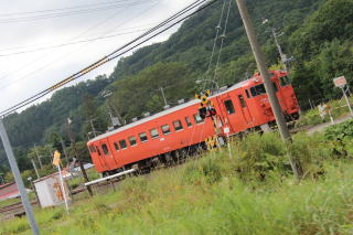 ほのぼのとローカル列車と並走。 なんとも、ほのぼのとした光景に出くわす。 |
