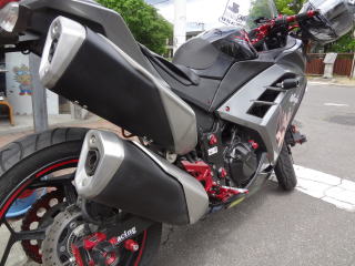 | 遠軽からお越しのNinja250 昨年乗り換えた、斎藤さんのNinja250のダブルマフラー。 250には重たいんじゃない? |