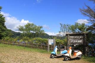 | 大湯沼、湖水は全部温泉です。 この大湯沼までは歩くか車でしか来れません。 大型バスは入ってこれないんです。 だから、このレンタルバイクが重宝するんです。 |