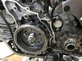 バイク整備はお任せください。 整備士免許を有するタカさんです。 ミッションのリンクが外れてしまったようです。 エンジン内部なので慎重に作業します。 |