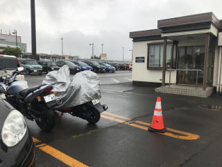 レンタルバイクとマジェスティ。 不思議ですね。 マジェスティは名古屋から来るタッキーの愛車。 やはり、雨と共にやってくる彼女です。 お昼からあめは上がりそうですね。 |