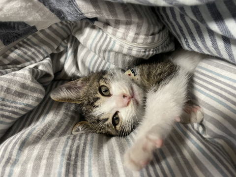 1日の4分の3は寝ている子猫の蘭丸です。