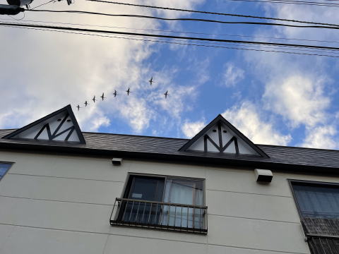 ケー!コー!カー!とリズミカルな鳴き声を出して飛んでます。
