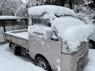 冬、降り始めの雪は重く大粒。
