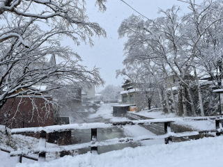 湿った雪が降り積もりました。